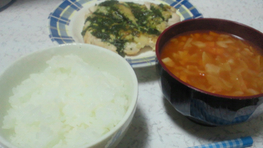 ミネストローネと鶏肉のソテーですw