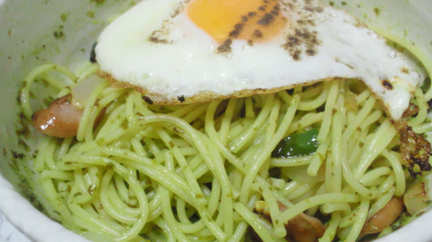 バジルソースで和えたスパゲッティw