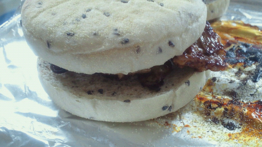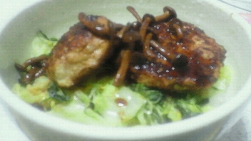 余ったのタネを、ハンバーガーと丼ぶりにしてみましたw